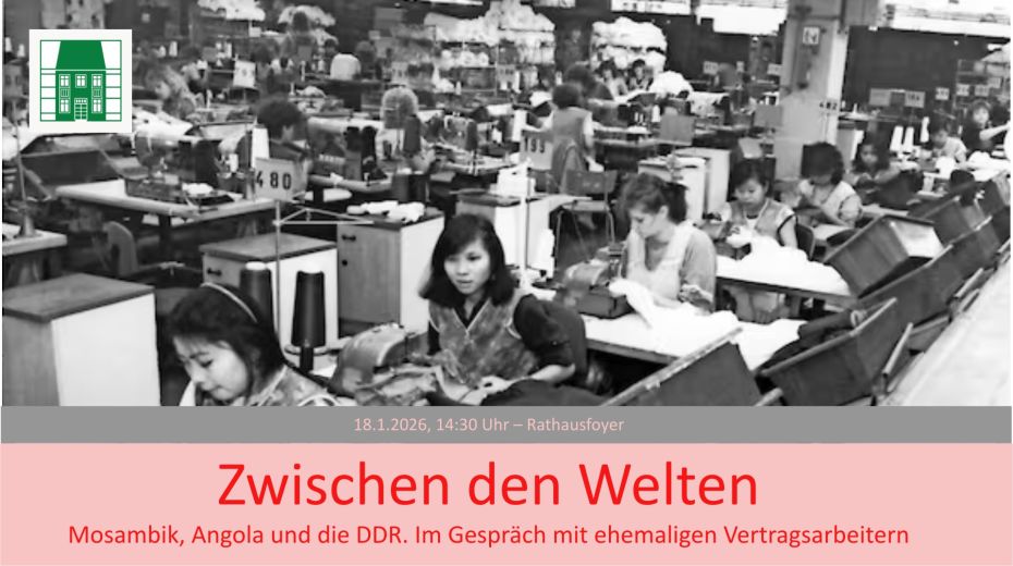Offiziell waren die „ausländischen Werktätigen", die ab den 1960er-Jahren in die DDR kamen, „Freunde", die eine Ausbildung erhielten, um anschließend beim Aufbau ihrer Heimat, den sozialistischen Bruderländern, zu helfen. Die Wirklichkeit sah jedoch oft anders aus. Auch in Schwedt arbeiteten in den 1980er-Jahren VertragsarbeiterInnen aus Kuba und Vietnam. Im Mittelpunkt der Ausstellung stehen die Geschichten, der über 15 000 VertragsarbeiterInnen aus Mosambik. Nach ihrer Rückkehr nennt man sie in Mosambik „Madjermanes“ – „die Deutschen“. Ein großer Teil ihres Lohns – bis zu 60 Prozent – wurde einbehalten und nie ausgezahlt. Bis heute kämpfen viele von ihnen um Gerechtigkeit.